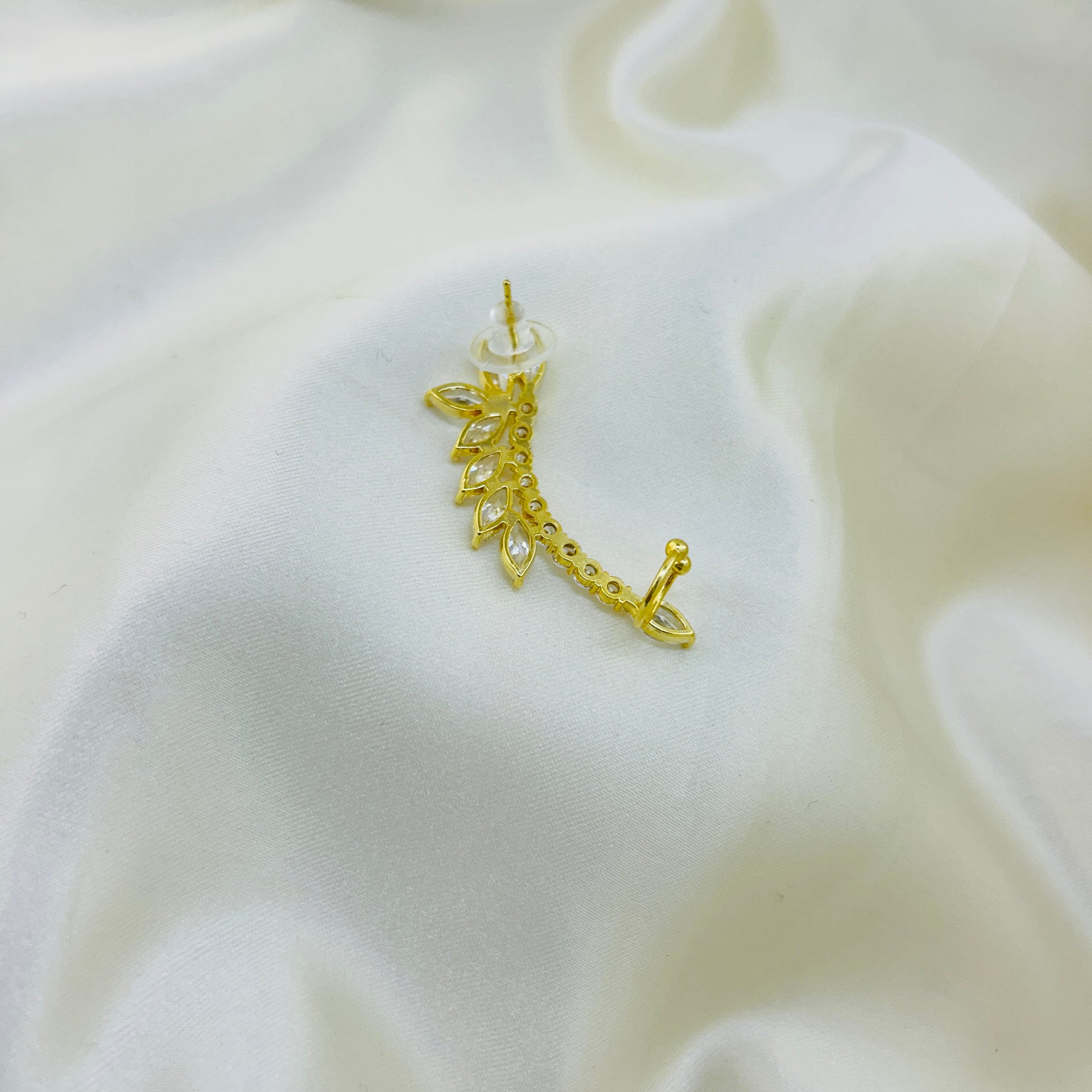 This oval stone climber ear cuff brings together bold stones and refined detail. Designed for the right ear, it starts from the piercing point and extends upward along the curve of your ear — finishing with a gentle cuff that holds securely without an extra piercing.